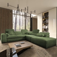 Narożnik z funkcją spania Tesalia III Lux zielony lewostronny komfortowy narożnik z wysuwanym podnóżkiem funkcja przesuwanego oparcia