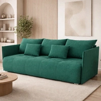 Kanapa rozkładana Selva butelkowa zieleń funkcjonalna sofa z pojemnikiem na pościel wykonana z komfortowej tkaniny typu plusz