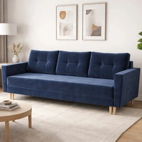 Kanapa rozkładana Fiesta granatowa funkcjonalna sofa do salonu z pojemnikiem na pościel elegancki wygląd wytrzymała pluszowa tkanina