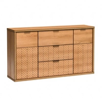 Komoda z szufladami Fonti 158 cm dąb karmel czarne uchwyty krawędziowe geometryczne kształty misterne zdobienie w postaci jodełki