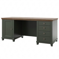 Biurko z szufladami Evora 180 cm butelkowa zieleń / dąb lefkas gustowna stylistyka zachwyci miłośników wyrazistych wnętrz do gabinetu lub biura