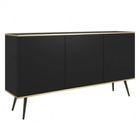 Komoda Luxury 160 cm czarna elegancki design korpus zwieńczony złotą listwą komoda wsparta na wysokich metalowych nogach