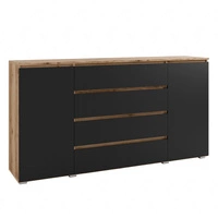 Komoda z szufladami Atson 145 cm dąb odwieczny / czarny stylowa komoda do salonu z pojemnymi szufladami oryginalny kształt frontów