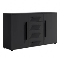 Komoda z szufladami Lovro 154 cm czarna nowoczesny design zachwyci miłośników wyrazistych wnętrz ryflowane fronty metalowe uchwyty