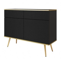 Komoda z szufladami Luxury 107 cm czarna nowoczesny design komody do salonu korpus zwieńczony złotą listwą metalowe złote nogi