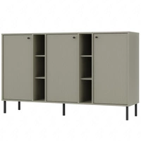 Komoda Kioto I 158 cm beżowa nowoczesny design subtelne uchwyty prosta forma wzbogacona o metalowe złote elementy