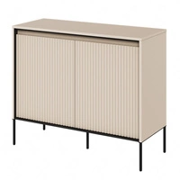 Komoda Trend 98 cm beżowa funkcjonalna komoda do salonu o oryginalnym designie ryflowane fronty z subtelnym oświetleniem