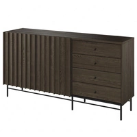 Komoda z szufladami Piemonte 165 cm jesion portland / czarny wsparta na metalowym stelażu designerski front przyozdobiony lamelami