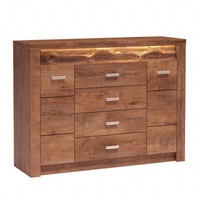 Komoda wysoka Indiana 76 cm jesion ciemny elegancka stylistyka komody z szufladami ozdobna deska na froncie komody oświetlona LED