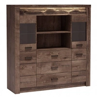 Komoda z szufladami Indiana 137 cm jesion ciemny gustowna stylistyka komody z przeszkleniem ozdobna deska na froncie komody oświetlona LED