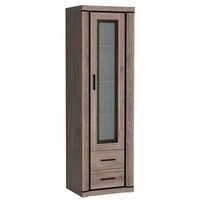 Witryna Dallas 58 cm dąb truflowy / czarny stylowa witryna z szufladami do salonu elementy z bezpiecznego szkła stylowe czarne uchwyty