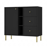 Komoda z szufladami Kioto II 100 cm czarny grafit nowoczesny design praktyczne półki złote uchwyty stabilna metalowa podstawa