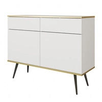 Komoda z szufladami Luxury 107 cm biała nowoczesny design komody do salonu korpus zwieńczony złotą listwą czarne metalowe nogi