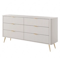 Komoda Luxury 160 cm biała elegancki design stylowe ryflowane fronty korpus komody zwieńczony złotą listwą czarne metalowe nogi