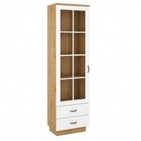 Witryna Scandi 60 cm dąb artisan / biały klasyczny design bezpieczne szkło hartowane witryna do salonu z szufladami