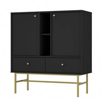 Komoda z szufladami Kioto I 100 cm czarny grafit nowoczesny design praktyczne półki złote uchwyty metalowa podstawa