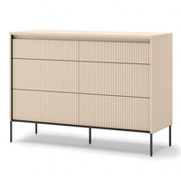 Komoda z szufladami Trend 130 cm beżowa pojemna komoda do sypialni o wyjątkowym designie ryflowane fronty z subtelnym oświetleniem