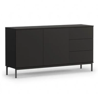 Komoda z szufladami Tutti 150 cm czarna minimalistyczny design prosta forma wsparta na metalowej podstawie system push to open