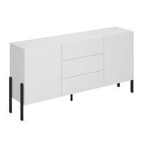 Komoda z szufladami Jukon 184 cm biała elegancka forma mebla w nowoczesnym stylu system otwierania push to open metalowe czarne nogi