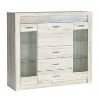 Komoda z szufladami Indiana 137 cm kraft biały elegancka stylistyka komody z przeszkleniem ozdobna deska na froncie komody oświetlona LED