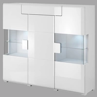 Komoda z szufladą Toledo 147 cm biała / biały połysk nowoczesny design komody częściowo przeszklone boki komody