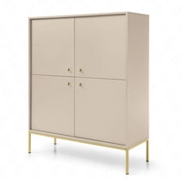 Komoda wysoka Mono 104 cm beżowa minimalistyczny design stylowy uchwyt prosta forma wzbogacona o metalowe złote elementy
