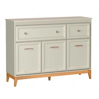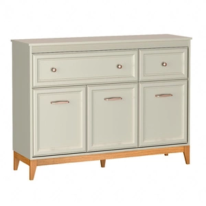 Komoda z szufladami Linka 135 cm beżowa elegancki design geometryczny kształt komoda osadzona na wysokich nogach ryflowany front