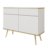Komoda z szufladami Luxury 107 cm biała stylowa komoda z ryflowanymi frontami korpus zwieńczony złotą listwą złote metalowe nogi