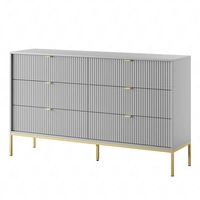 Komoda z szufladami Lovro 154 cm szara nowoczesny design zachwyci miłośników wyrazistych wnętrz ryflowane fronty złote dodatki