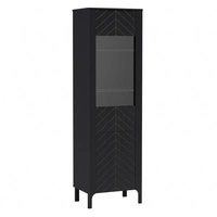 Witryna Malumi 60 cm czarna stylowa witryna do salonu ozdobiona wyrafinowanym wzorem jodełki wysoka smukła podstawa