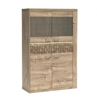 Witryna niska Livinio 100 cm dąb ribbeck / biały połysk estetycznie i starannie wykonana witryna do jadalni podświetlenie ledowe