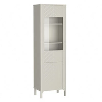 Witryna Malumi 60 cm beżowa stylowa witryna do salonu ozdobiona wyrafinowanym wzorem jodełki wysoka smukła podstawa