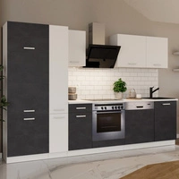 Zestaw mebli kuchennych Clara 240 cm meble do kuchni z czarnymi metalowymi uchwytami odporne na wilgoć parę wodną i uszkodzenia