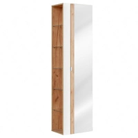 Słupek łazienkowy wiszący Capri 45 cm biały połysk / dąb craft złoty funkcjonalny design stylowa szafka z lustrem i szklanymi półkami