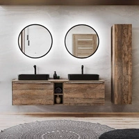 Zestaw mebli łazienkowych Santa Fe dąb vintage zestaw mebli z szafkami pod umywalki nablatowe metalowe uchwyty krawędziowe