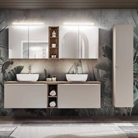 Zestaw mebli łazienkowych Santa Fe szary krzemowy / dąb vintage zestaw mebli z szafkami pod umywalki nablatowe uchwyty krawędziowe
