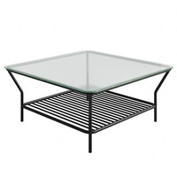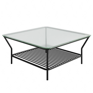 Stolik ogrodowy Teneryfa 92x92 cm czarny nowoczesny design stolik z dodatkową półką poniżej blatu dekoracyjne szkło na blacie