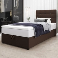 Łóżko kontynentalne Kingston 100x200 brązowe w nowoczesnym skandynawskim stylu z tapicerowanym zagłówkiem z kryształkami łóżko z pojemnikiem