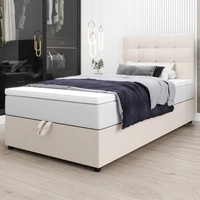 Łóżko kontynentalne Kingston 90x200 beżowe w nowoczesnym skandynawskim stylu z tapicerowanym zagłówkiem z kryształkami łóżko z pojemnikiem