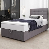 Łóżko kontynentalne Kingston 100x200 szare w nowoczesnym skandynawskim stylu z tapicerowanym zagłówkiem z kryształkami łóżko z pojemnikiem