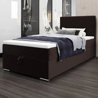 Łóżko kontynentalne Fargo 90x200 brązowe w nowoczesnym skandynawskim stylu z tapicerowanym zagłówkiem łóżko z pojemnikiem