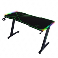 Biurko gamingowe Zeo czarny / zielony designerskie biurko antypoślizgowy karbonowy blat w całości pokryty podkładką oświetlenie LED