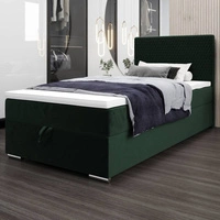 Łóżko kontynentalne Fargo 90x200 butelkowa zieleń w nowoczesnym skandynawskim stylu z tapicerowanym zagłówkiem łóżko z pojemnikiem