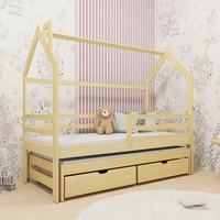 Łóżko dziecięce Chip 80x200 cm sosnowe drewniane łóżko domek z pojemnymi szufladami łóżko 2 osobowe wysuwane do pokoju dziecka