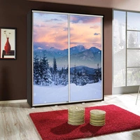 Szafa przesuwna Artistino 155 cm z grafiką zima korpus szafy w kolorze wenge wykonany z płyty o grubości 22mm