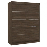 Szafa przesuwna Luft 150 cm dąb sonoma czekolada funkcjonalna szafa do sypialni fronty wykończone poziomymi srebrnymi listwami
