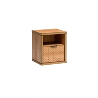 Szafka nocna Fonti dąb karmel elegancka szafka z szufladą czarne uchwyty krawędziowe geometryczne kształty misterne zdobienie w postaci jodełki