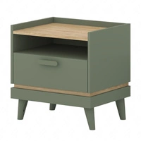 Szafka nocna Scandia zielona / dąb olejowany nowoczesny design szafki z szufladą osadzonej na wysokich nogach idealna do sypialni