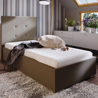 Łóżko tapicerowane Bejar 90x200 ciemny beż z zagłówkiem w nowoczesnym stylu idealne do pokoju młodzieżowego lub małej sypialni