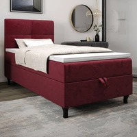 Łóżko kontynentalne Benet 90x200 bordowe w nowoczesnym skandynawskim stylu z tapicerowanym zagłówkiem oraz zanóżkiem łóżko z pojemnikiem